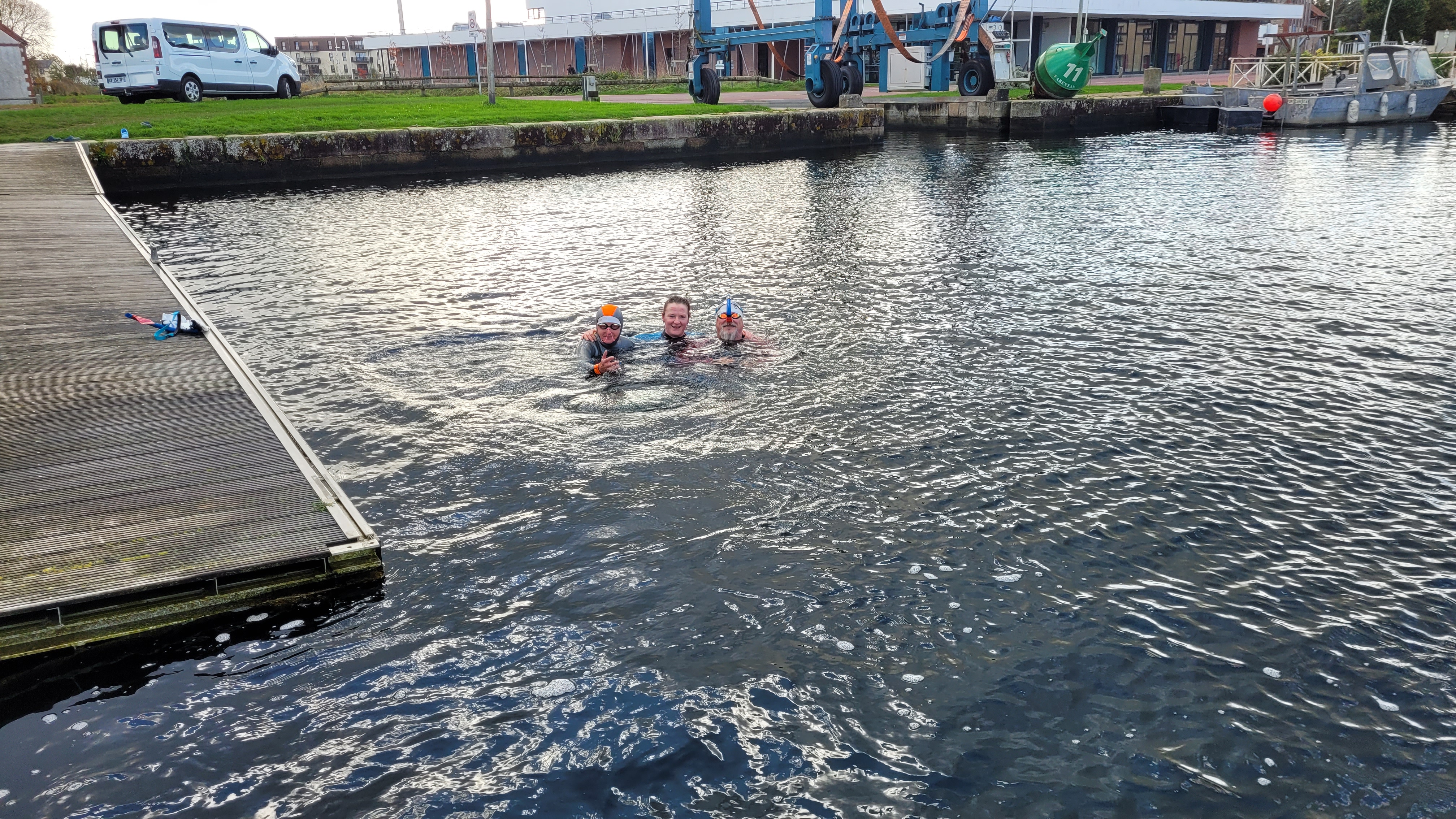 Une petite équipe était engagée sur cette compétition (les autres étant indisponibles). Au programme pour nos cinq nageurs présents, un parcours en boucle de 500 m à faire 2 ou 6 fois suivant la distance : 1km SF ou 3km BI. Dans une eau à 13°C, ils ont bénéficié d’une météo relativement clémente ; une petite fraicheur avec un léger vent mais sans pluie.